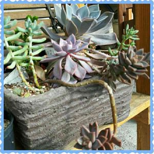 お休みの日のホームセンター通い🚘 いつもは行かない所を探検してます。 今日はなさそうだな~と思ったら意外にも不思議な多肉さんに出会えました。 なんとか錦? カメレオンみたいな柄! 七福神かな~? 多肉🔰が必死に思い付く名前を考えながら…(≧∇≦*) ❤マークのお二人さんをお持ち帰りしました(//∇//) 左側の子はお子様付💕モリモリにしたいな~! 右側は3種類の寄せ植え💕 ホームセンターさんへお願い! お名前つけてあげて下さい! ついてるのもありますが、ない方が多いですね…。 お持ち帰りした子も…誰でしょうか(~。~;)?
