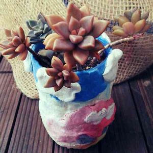 今5年生の息子が低学年の時に図工で作った作品を持って帰るやいなや奪い取り、即多肉を植える母… ごめんよこんな母で( ̄∇ ̄*)ゞ反省はしておりません。 植えれる容器はなんでも植えます🌵
