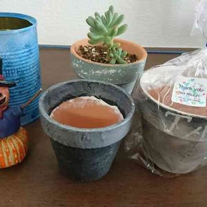 今日は幸田の木工市に行ってきました。 ハルさんのお店で買った物といただいたリメ缶とリメ鉢。何を植えようかな🌼 ハロウィンの置物はお店の飾りだったのを無理言って買わせていただきました☺☺☺ ありがとうございます😆😆