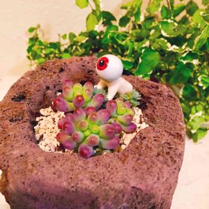 :✲:゚・✿ヾ╲初オヤジ祭り╱✿・゚:✲: 昨日の木工市で、こんなに変わった鉢を ハルさんのお店で見つけたよ❣️ 軽石でごつごつしてる。 もう、オヤジさんが登ってきたよ ^ - ^ オヤジさんも 気に入ったみたいだね〜🌸