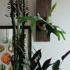 🎃ハロウィン月間🎃 今日のハロウィンディスプレイはダークな感じのものたちを並べて。 よりコウモリ感が出てきたアルキコルネは目下、胞子葉ターン🦇 葉裏が紫色のクテナンテ・セトサ💜 葉っぱが紫色に染まった緑ん紅彩雲閣(ユーフォルビア・トリゴナ赤斑)💜 ちなみに この彩雲閣、年末には葉っぱが赤く紅葉してクリスマスカラーに変身します💚❤