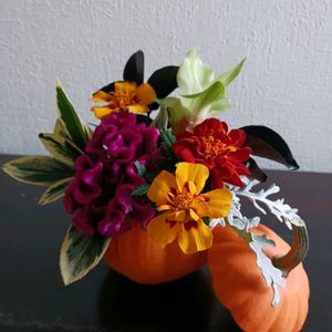 🎃ハロウィン月間🎃 手元にあるもので今年も作りました オモチャカボチャを器にした掌サイズのアレンジメントです カボチャはくりぬいて水を入れるカップを仕込んであります ケイトウ、クルクマ 裏庭ポタジェからマリーゴールド、サルスベリブラックパール、斑入りマサキ、シロタエギク うーん 考えたつもりだったけれど、結果、「入れただけ」って感じに仕上がりました 色味と🎃がそれっぽく見せてくれてるので助かります 🏷️ハロウィン月間 🏷️sasukemama倶楽部 🏷️今日のお花