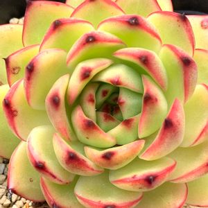 アエオニウム ヨンジャ錦 これも 頭が大きい子です😂 横から子吹きはしません 足元から赤ちゃんニョキって🎶 秋に小さな子お迎えしても とっても大きな子に成長しましたよ (*´︶`*)♡