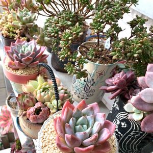 アエオニウム pinkgrow どんな風に 変化するんだろ☺️🎶 今日は 朝からもろもろ市場へ( *´꒳`* ) 娘に送ってもらい 現地inしたけど、、 もー 雨☂️と人とに やられた〜💦 皆さんカッパ! 気合いがすごい😆 思うように傘もさせず、、 早々、退散😫💦 あすかちゃん 鉢と実生苗が並んでるのに 感動(*ˊ˘ˋ*)。♪:*°