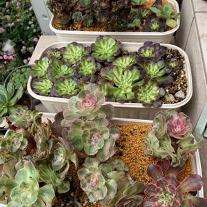 アエオさんで いっぱいになってきたぞ〜😆 エケさんは 最近は 廃棄苗の札落ちを お迎えして 寄せ植えてます🤗🎶 雨ざらしにしておくと あっという間に 可愛いなってます🎶 そろそろ 寒さ対策🤔💬 アエオさんは いつまで外で 放置で良いんだろうか?? アエオさんって 違う品種購入して 届いたら全く同じ😵💫ナゾ 師匠に聞いたら 韓国、中国。 同じでも生産者で名前が 変わってくるそうな💬 あ〜ナゾ🤣笑