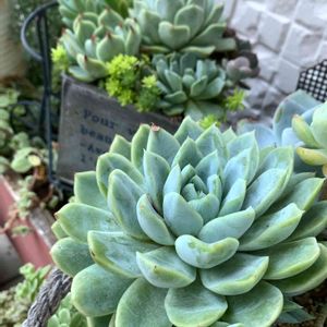 🏷毎月13日と14日は葉挿しの日に参加します 一年半近くで白牡丹丼ができてきました😊 となりはオパリナ。 オパリナは一枚の葉からいくつお子さまができたことか。 葉挿しは面白いですね😄