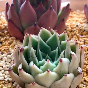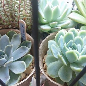 巨大化して行く多肉さん😂 どーすればいいのか分かりません💧 植え替えしても こんなデッカいの 置き場に困る😥 手前の右の子 🍀la la pink🍀 pinkなんて 見る影もない😒💬