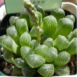 ずっと気になっていたハオルチア オブツーサ💕 HCで、見かけてお迎えしました🥰 蕾がついているのですが、花を咲かせると負担がかかるそうなので、一つ花を見たら切ろうと思ってます✂️