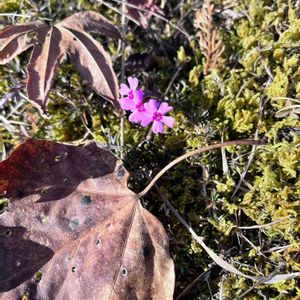 枯葉がたくさん落ちる中にひっそりと咲いていました。日当たりが良いので、綺麗なピンクが目立ちました🌸