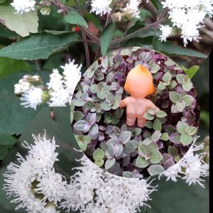 こんにちは〜⁎ .。❀ * 9月も終わりですね😊 今日のお花 フジバカマ ユーパトリウム チョコレート 別名 銅葉フジバカマ 白いお花が咲き出して、可愛いですꕤ୭* カリシアロザートさんにダイブしている可愛い キューピーちゃんのオチリで 🏷オケツの日 参加しま〜す🌿,,