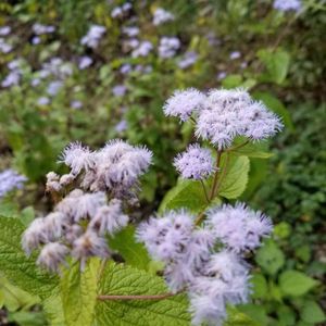 🌿西洋フジバカマ ユーパトリウム コエレスチヌム 青花💙も白花と一緒に咲いています 🌿🌸 やはり花に元気が無い様な気がします😥 少し御馳走をあげましょう🍺🍴🍰 液肥と愛情です💕