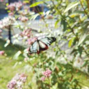 ピンぼけだけど... アサギマダラ来ましたー❗❗ フジバカマの蜜を求めて来てくれました💗 仕事中だったので、ちゃんと撮れなかったのが残念😣。でも美しい蝶々でした。