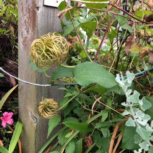 昨年咲いたクレマチスの果球の名残