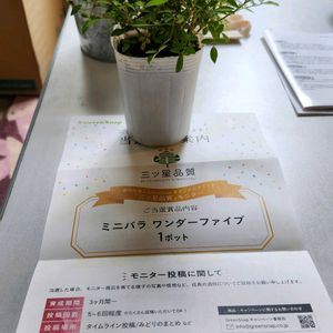 🌟三ッ星品質モニター🌟 当選🎉🎉🎉 昨日 出かけ先から帰ったら 部屋に見知らぬ箱 何だろーと開けてみると〜 可愛いミニバラ‼️ ワンダーファイブって品種 四季咲き性で 冬はピンク 夏は白に変化するらしい… 今年の暑さで 庭仕事サボっていたので 一気にやる気が沸いてきました😊 ワンダーファイブ 大事に育てたいです。 三ッ星品質様 ありがとうございました🙇