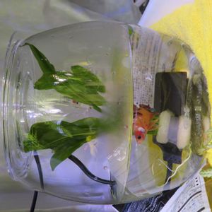 リシマキアが水草化できると聞いたので早速庭のリシマキア ヌンムラリア オーレアを切って鉛で束ねて水槽に沈めてみました。ついでに庭で繁殖しているオレンジミントも水草になるか分かりませんが沈めてみました。 鉄魚は金魚ほどは水草に悪さしないですがそれでも掘り返したりするのでなかなか水草が育ちません。