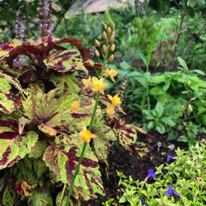 おはようございます😃 今日も、晴れが続きそうです☀️ 毎日暑い💦です体調管理をしっかりしてください 庭では、頂いたオレンジ色の小さな花が咲いてます 名前が分かりません どなたかよろしくお願いします 一緒に植ってるコリウスと、 トレニア、どちらも元気で、気に入ってます💕 名前をちゃむさんからおしえて頂きました ブルビネ・フルテスケンス(ハナアロエ)です。 アフリカのお花みたいです😊 医療従事者及びコロナと闘っている方々に感謝👏