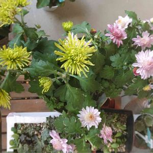蕾で買ったカクテルマムがよーやく咲きました🌸 同じ種類を買ったつもりだったんだけど 咲くと違う花に❀✿なってる(笑)