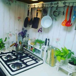 DIYで壁紙を貼って綺麗になったのでキッチンにも観葉植物とドライフラワーを置いてみました。う~ん❗やっぱり癒される~☺