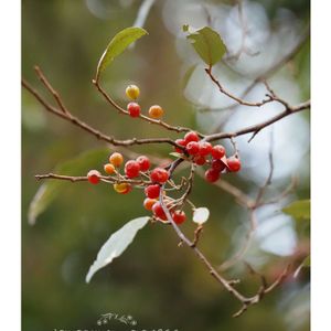 ソヨゴ(冬青) *雨上がり紅く実る冬青 *ジョウビタキの雌