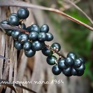 コクリュウ(黒竜) 枯れている様に見えた黒竜の葉 その実は黒くジャノヒゲ属なのだそう 藪蘭にも似たその実は垂れ下がる様に 黒く美しい実を付ける。( ^^ )♪
