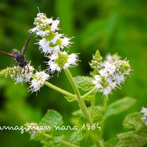 女無天とムナグロチビドロバチ なんて人気なお花なんだろう 口の中が爽やかになるのかな? 昆虫達に大人気あり過ぎでしょ (σ≧▽≦)σ