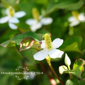 ヤエドクダミ(八重蕺草) ご近所さんから頂いた八重蕺草のお花ちゃん達 嬉しい事に根付きで頂き感激~** 地植えは拡がり凄い事になるので 鉢植えで育てた方が良いとのアドバイス 早速、植えちゃうぞぉ~ ♪( 'ω' و(و "