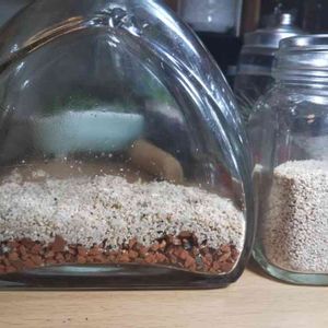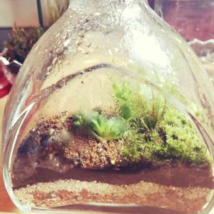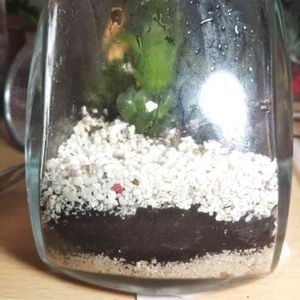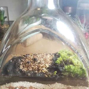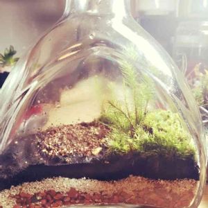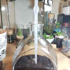 この、ボトルで何か作ろうかな☺️ピンセットで、端まで届くし。 苔テラ❔ ハオテラ❔ 用土は高さ3センチ程度かな。😃 まずは、磨きをかけないとね😃