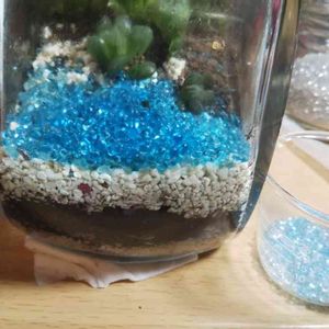 ガラスビーズです。😃 右にあるガラスの小鉢には、小粒で、青とクリスタルを混ぜています。上にばらまきましょう✨😃
