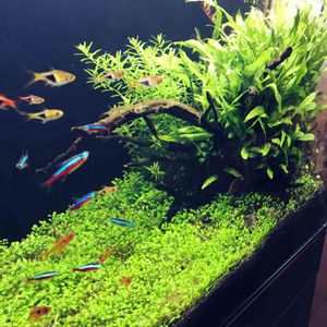水草ネオンテトラ水槽 前にある緑の水草は「リシア」です