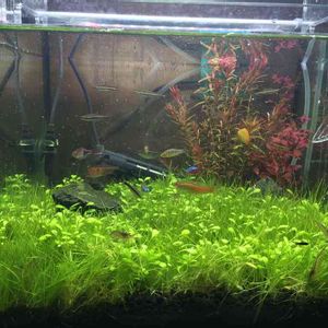 60㎝水槽。 コリドラスパンダが100匹以上暮らしてます( ´艸`)♡キャワイー 親パンダは30㎝キューブ水槽にいるのですが、あまりに産卵するもんで、結果、おちびがこんなに増えてしまいました(〃´o`)=3 水草はエキノドルス、クリプトコリネ、ルドウィジア、ミクロソリウム、タイニムファなどで、陰性水草ばかりです(;´∀`) 今はもうおちびさん達メインで、水草は放置しちゃってます💧