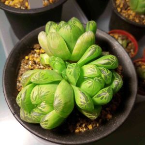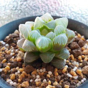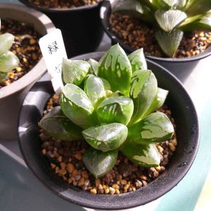 今夜もハオルチアの植えつけ。 ジョイアエ(OB-7)。 最近こういうライトグリーンの品種が好き。窓が小さくて中が影になって見えるので葉脈とのコントラストがきれい。 花が咲いたら、この系統で交配種をつくってみたい。