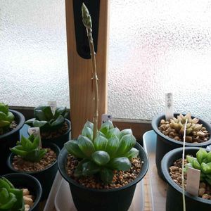 ハオルチア緑焰から花芽が伸びてきました。 交配させてあげたいけど、ほかの株からはまだ花芽が出ていません。 花の時季を合わせるのは難しいですね。 やはりたくさん育てて、開花が合ったもので交配していくしかないのでしょうか? 気長にやっていきます。