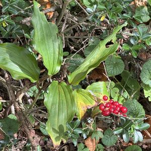 雪笹 ユキザサ ユリ科(キジカクシ科) マイヅルソウ属 分布 北海道 本州 四国 九州 在来種 花期 5〜7月 果実期 8〜9月 とあるが撮影10/12 径 5〜7mm 液果(中に種子が1〜2個) 山地の落葉広葉樹林の林床に生育する 固まって何株か。 鮮やかでした。 リキュールなどにつけて果実酒として飲めるそうです。