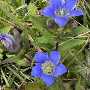 竜胆 リンドウ 別名 笹竜胆 ササリンドウ リンドウ属の総称のリンドウと区別するため ササリンドウ と呼ばれる。 リンドウ科 リンドウ属 分布 本州 四国 九州 在来種 花期 9〜11月 多年草 ・花 →筒状で先に5枚の花弁が 裂けており、その裂片の 間には副片(副花冠)があ る。 →筒の内部にある紫褐色の 斑点は 蜜票。 →紫色の花弁の部分の薄黄 緑色の斑点で光合成をおこ なっている。 ・雌雄同株 雄性先熟で自家受 粉を避けている。 ・光を受けると開き、日陰 や雨の日、夜には花弁を 閉じる性質がある。 ・苦い根は薬用となる ・対生の笹に似た葉が茎を抱い ている。 高原の青空に咲く紫色の花が鮮やかでした。 ユカリさんの 🏷️2025秋の十草 1種目参加