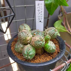おはようございます(✿◉᎑◉) 私もオベサブロウを迎えました! とっても気にってます。 最初名前を見た時、 オベサ ブロー って書いてあったので なんてカッコイイんだと Obesa bro って思ったので 「Yo! 兄弟!」 っていうイメージで(☆´∀`人´∀`☆) 調べたら Euphorbia Obesablow だって(⑉・̆⌓・̆⑉) スペルも違うし。 交配種だってあとで聞いて・+(*゜∀゜*)+・ 違うんかっとなりました。