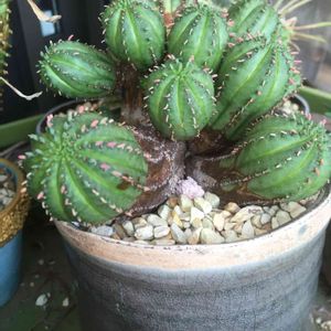 ユーフォルビア オベサブロウ 子吹き親株 この気温で青々してます。😆