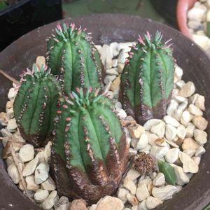 ユーフォルビア オベサブロウ ユーフォルビアは今年も生育良い感じ オベサブロウの子株がさらに子株を吹き始めたので、全部外して土に挿しました 無事に根付くでしょうか