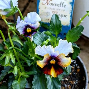 今日はお休みだったので待機苗を植え込みました🌱🎶 ただ、案の定赤玉土・腐葉土やらが不足…💦💦 土を買いに行く🏃 一緒に花を見る😳😳 で、お気に入り苗をを買う🌱🎶🎶 のループにいつも通りハマるパターン💦 でも、このパンジーは美しい夕日みたいで🌇✨✨ しかも、現役の農業高校生が育種したビオラなんです。(詳しくは3枚目を) それを神奈川随一の規模の素晴らしい花農家さんが生産して、この店で独占販売🌱🎶 まさしくBFSコラボレーションビオラ🤩✌️ 実は去年から販売されていましたが、今年は格段に色彩のレベルが上がりました! ゲブラナガトヨさんのくろすずめみたいなのもあったなぁ。 他にも📸撮ってくれば良かった。 それを今日見つけた色みが素晴らしいブルー&クリームカラーのシエルブリエと植えたちゃいました😜💦💦 そのままだと自信が無かったので、お助けプリティプランツのイベリスにマリアージュをお願いしました🌱✨✨ 多分、このBFSビオラ&パンジーはまた買います🤩✌️