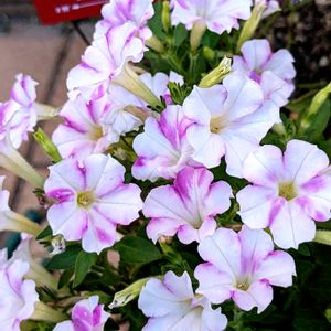 ペチュニアジュリエット・桜モダン🌸 最近になって秋の訪れを感じたのか、良く咲いてきてくれてます🎶 ホイップマカロンとはタイプが違うようなちょっと上品さを感じる花模様が良い感じです。 これから秋に向けて開花準備完了といきたいですね😝✌️