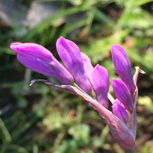 こんなツボミの姿も素敵なルリフタモジ 茎や葉がニンニクの匂いと載っていたので きちんとお願いして細い葉っぱをちぎらせて頂きました。 なんとニンニクと言うよりニラの匂いでした。 その後はずっとニラの匂いと一緒に植物園をみてまわりました!😆 咲いた姿は11月2日の投稿です。