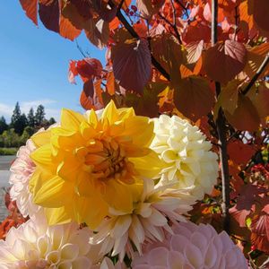 🏷️今日のお花 ガマズミ 🏷️ダリア◇ラブ 🏷️素敵な水曜日 参加します(,,ᴗ ᴗ,,)ꕤ*.゚ 昨日 天気良く花壇整理 ダリアカット✂️咲いてたお花を 昨日出来なかった 「青空にダリア」 今見たらガマズミ紅葉🍁バックになってた😁 ドウダンツツジも真っ赤に❤ 昨日のダリアと大集合 *きき*も居るよ りりーちゃんとかほちゃん*ϋ*纏ってます😊 みどりのまとめ投稿しました!良かったらご覧下さい🙇