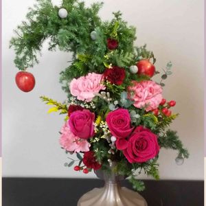 おはようございます~💕 今日の一枚は フラワーレッスンにてサンタ帽をモチーフにしたツリー風のアレンジメントです🎄