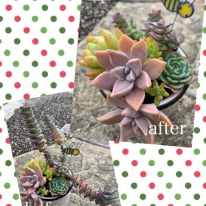 キングギドラを切って✂️スッキリさっぱり 切ったキングギドラはお向かいさんに婿入りしました🤭 そして私はイオノプシジウムと干柿をGET💕 わらしべ長者となりましたとさ😆 鉢の中の右下のグリーンの子 七福神かな?と思うのですがどうでしょう?