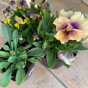 昨日お迎えしたお花達 ブルーベリーチーズケーキみたいな色合いのパンジーと 後ろのビオラは表黄色、裏紫色のリバーシブル 今年は暖かみのある色合いに惹かれます🤭 左下の葉っぱはオンファロデス インスタでフォロワーさんが育ててるのを見て 可愛いなぁと思っていたので出会えてラッキーです🎶