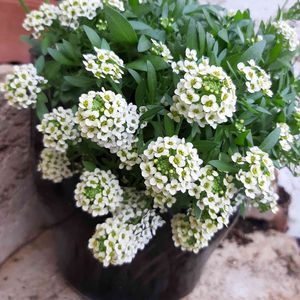 昨年アリッサムは、いつの間にか 居なくなったのに、 こぼれ種から? 鉢がいっぱいになりました~😊 おーい!スカピオサ💜 どこに居ますか??😁😅💦💦