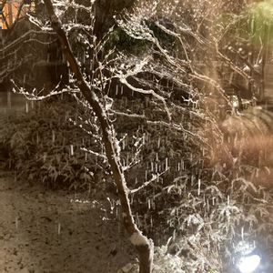 落葉した木に綿の花が満開❄️❄️❄️ スーパー銭湯の中庭🧖♀️ 雪よ~止め〜(∩'・ェ・`)⊃ ━☆゚.*・。° 積もらないでね🙏