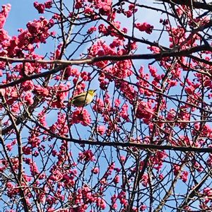 キュンキュン乙女倶楽部活動参加します♪ その2 たまたま見かけたメジロさん🐦💓 なので、ピントもなにもあったものでは有りませんが、スマホ📱急ぎパチリしてみました🥰 桃色パラダイス🌸💓❣️