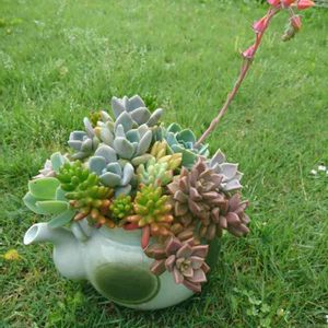 昔のやかん?!寄せ植え もりもりでかわいいです。