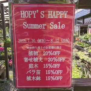 いよいよ恒例のハッピーサマーセール開催です! 今年は昨年より2日早く夏のセール始まりました! 暑いこの時期でもガーデニングは楽しめますよ! お庭の植え替えされてない方は、是非この期間にお得にお買い物して下さいね! 沢山のご来店心よりお待ちしております! #夢と緑を運ぶ店ホピー#有限会社鈴蘭園#神戸市北区園芸店#ガーデニング#花屋#花のある暮らし#植物のある暮らし#ハッピーサマーセール2018#お得にお買い物#沢山のご来店心よりお待ちしております! @ ホピー鈴蘭園