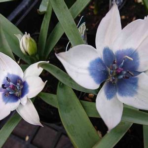 原種系ミニチューリップ“アルバコエルレア・オクラータ” 白地に中心部がブルーのバイカラーの平咲きの花色が個性的で魅力的な品種。 草丈も15㎝~20㎝とコンパクトで健気です! 分球が遅くなかなか増えません。 一般的なミニチューリップと比べて少しデリケートなので、他の植物と寄せ植えするよりは、単体で小さな鉢で管理すると育てやすいです! 在庫残り僅かです。お早めに(笑)! #夢と緑を運ぶ店ホピー#有限会社鈴蘭園#神戸市北区園芸店#花屋#ガーデニング#花のある暮らし#植物のある暮らし #原種系チューリップ#アルバコエルレア・オクラータ#魅力的な花色